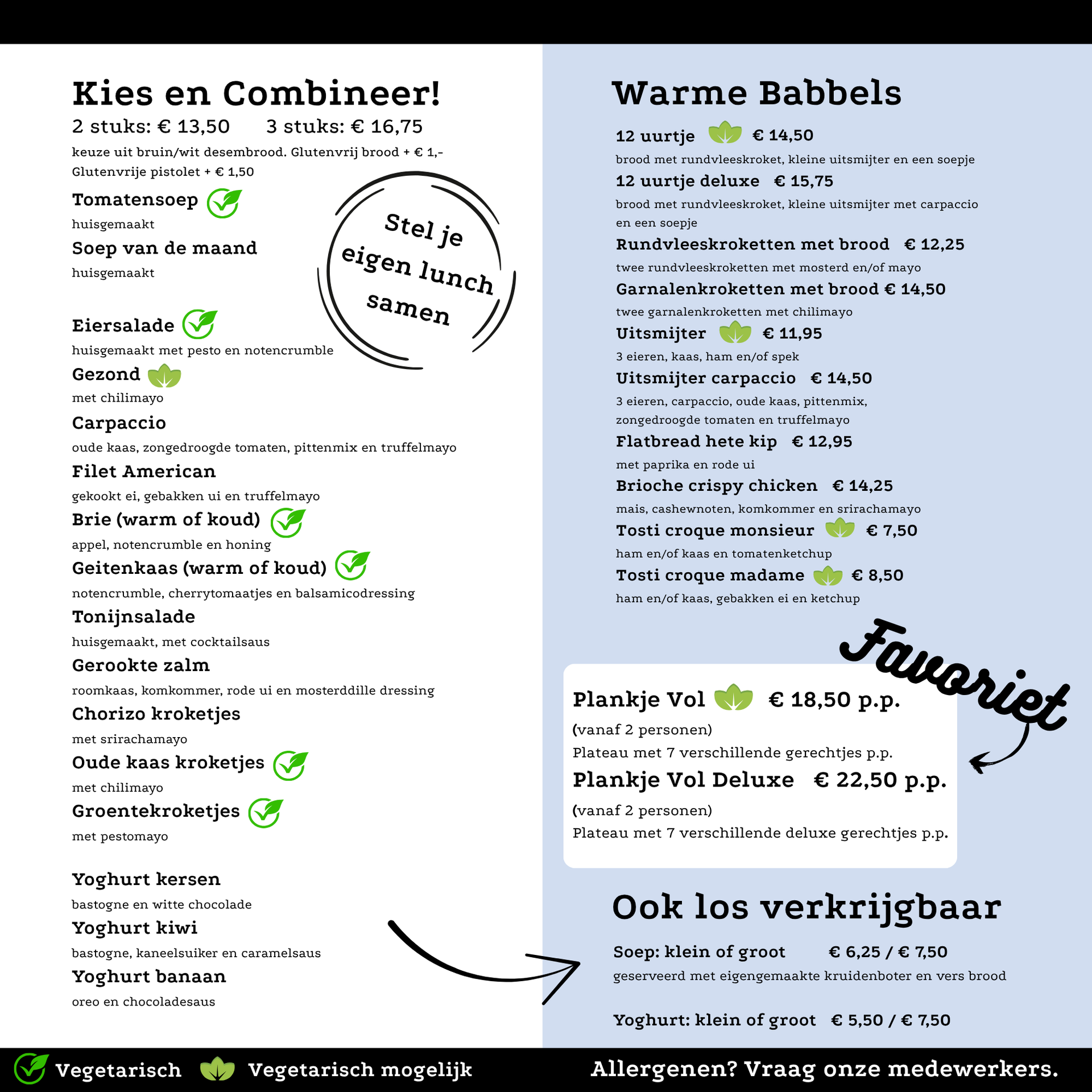 Wil je een lunch afhalen? Dit is zeker mogelijk, bel even vooraf en wij zorgen dat het voor je klaarstaat.